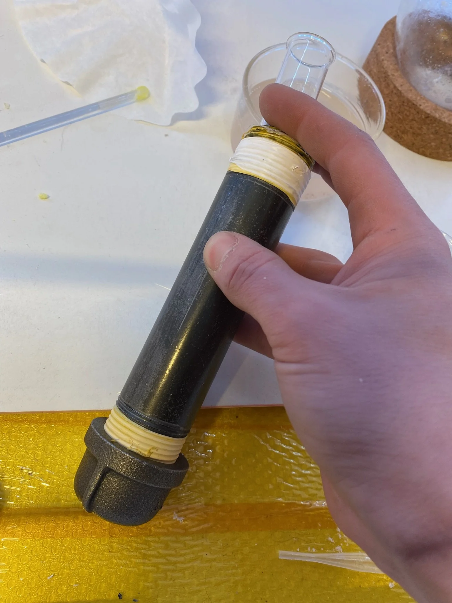 Well, it didn’t work quite the way I hoped. The glass vile shattered while it was being heated because the pressure was too high. Luckily it was in the fume hood and an extra plexiglass guard. I had a pair of tongs holding it; so no injuries. The polymerized product essentially shattered.