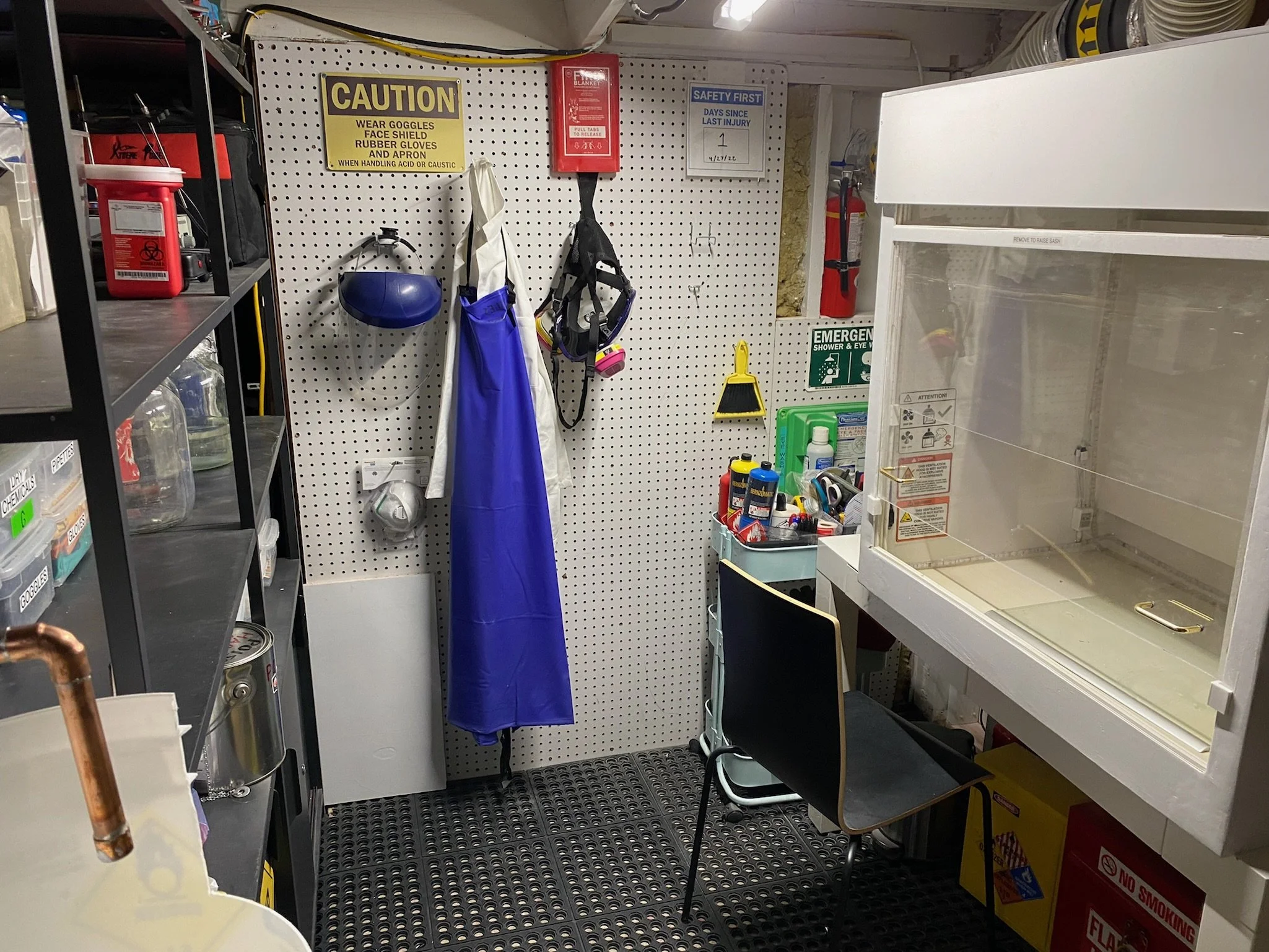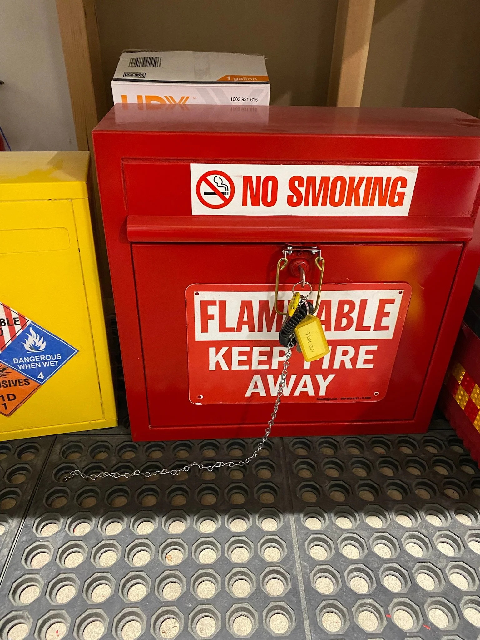 Both flammable safety cabinets were created using steel mailboxes. This was much cheaper and convenient since the sizes fit underneath the fume hood