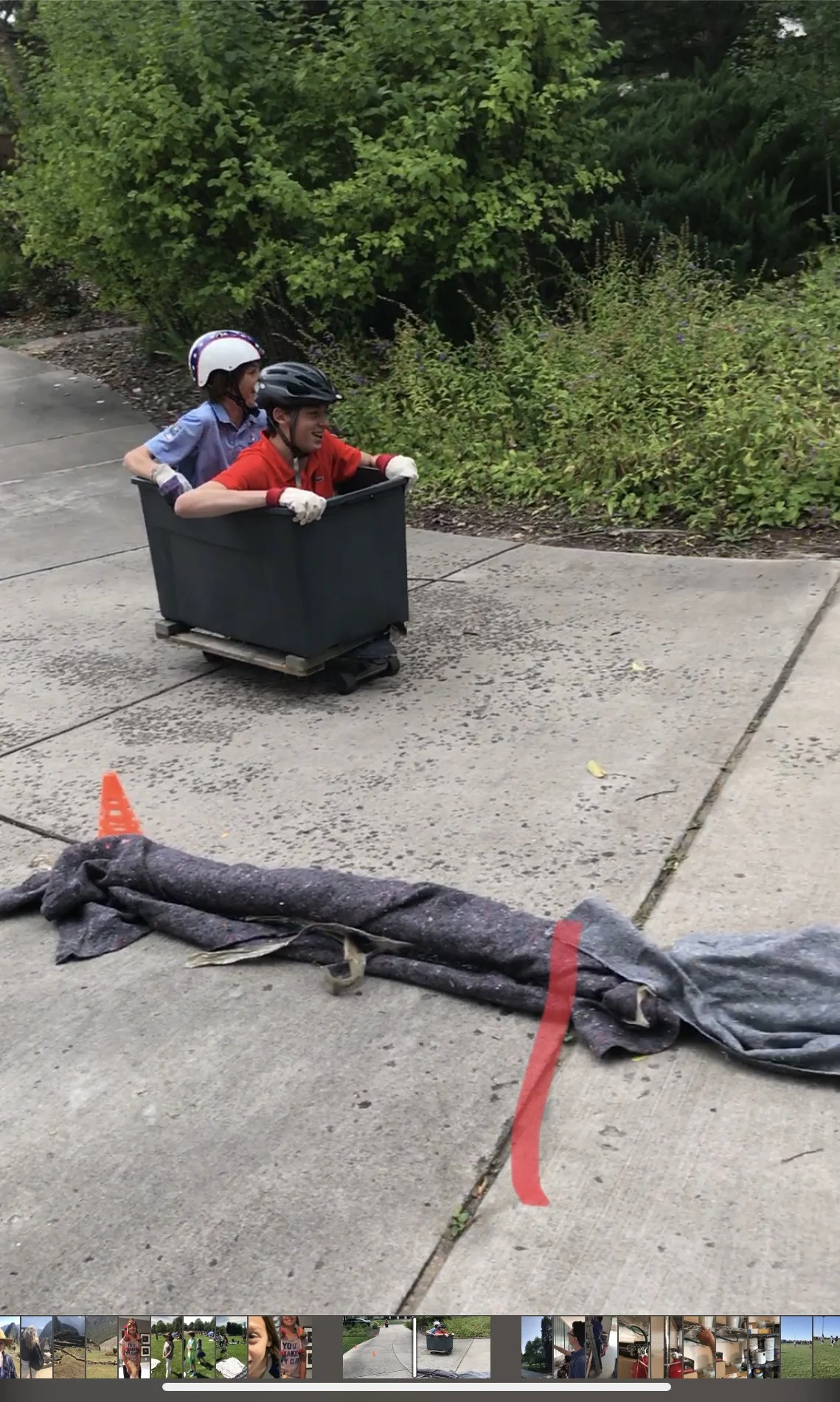 What can you do with moving blankets, a dolly, and a plastic bin? Make a bobsled of course! Watch this Olympic level bobsledding video here.