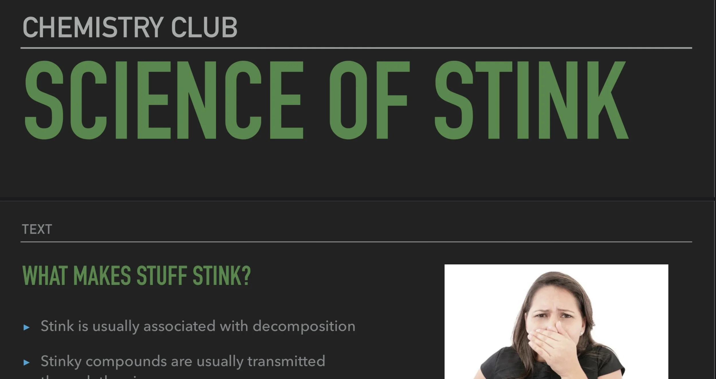 What makes stuff stink? And, what are some common reasons people want to intentionally make things stink? In this lab, we looked at compounds that humans perceive as smelling bad, what they are used in and and made Cadaverine from Lysine supplements.