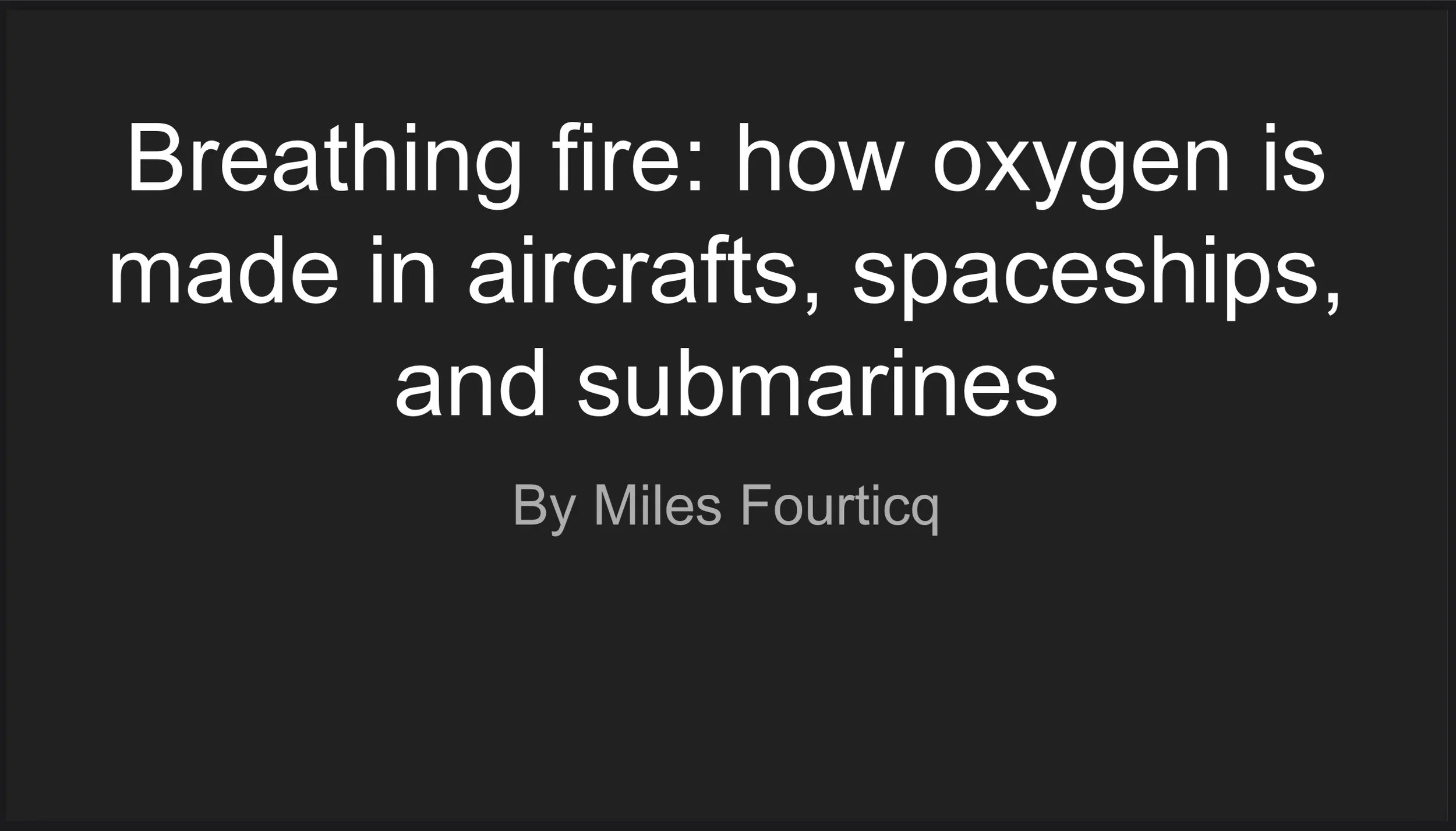 This lab was all about how oxygen is generated in airplanes and submarines using combustion reactions. The lab portion was a scale model display I made using the same chemicals used in commercial applications.
